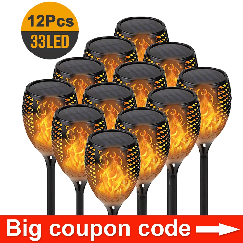 Best 12LED 33LED Solar Flame Torch Light Flickering Waterproof Garden Decor Landscape Lawn Lamp Path Lighting Torch Outdoor Light and You will save 70% or US $3.41 today