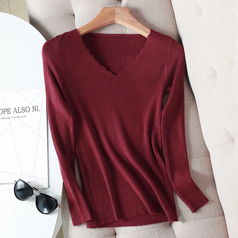 2021 basic wavy v-neck solid autumn winter Sweater Pullover Women Female Knitted sweater slim long sleeve badycon sweater cheap