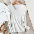 Best savings for 2021 basic wavy v-neck solid autumn winter Sweater Pullover Women Female Knitted sweater slim long sleeve badycon sweater cheap