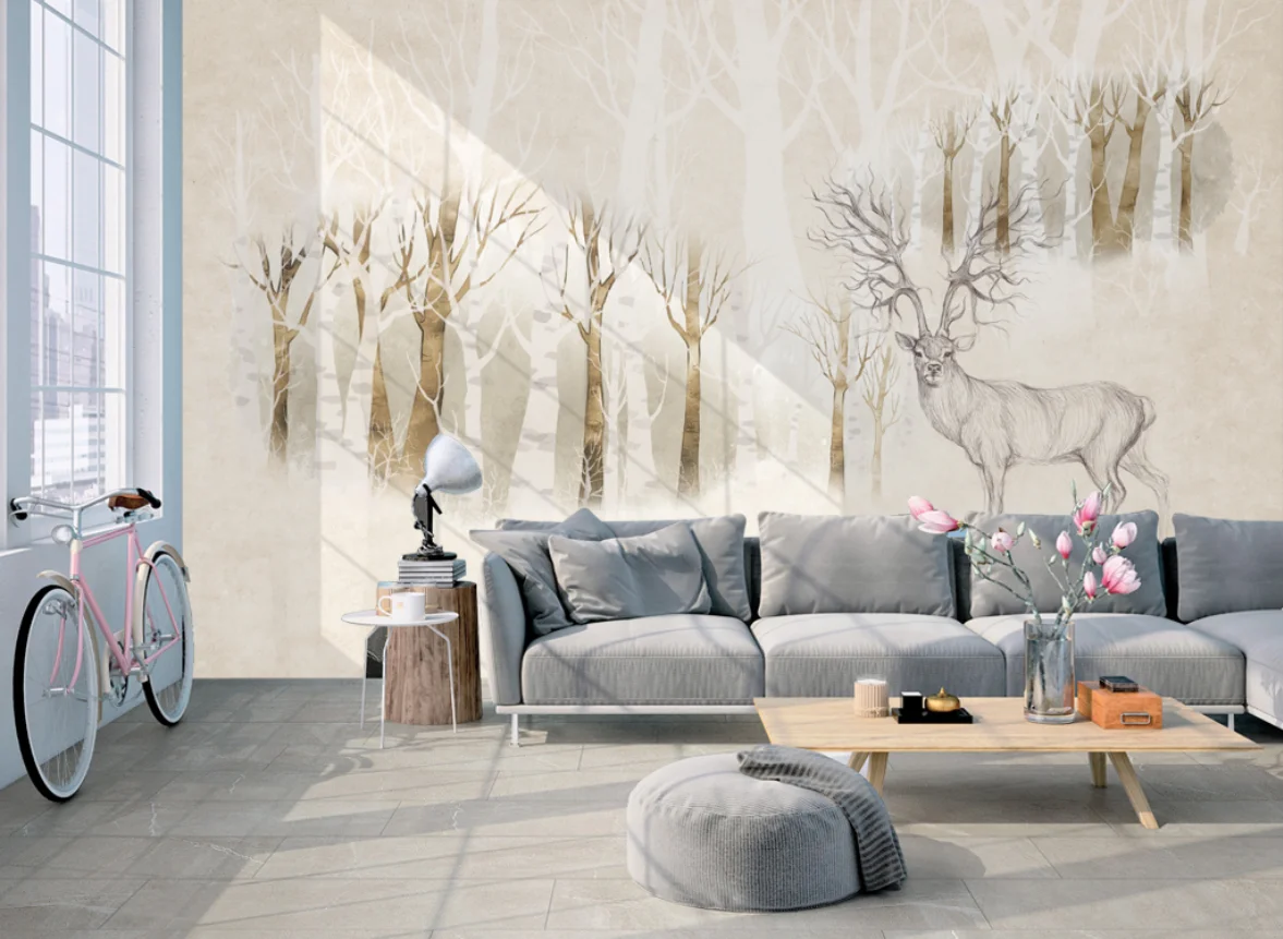 Custom light luxury hand-painted retro Nordic elk forest living room bedroom dining room elderly room decoration whole house bac