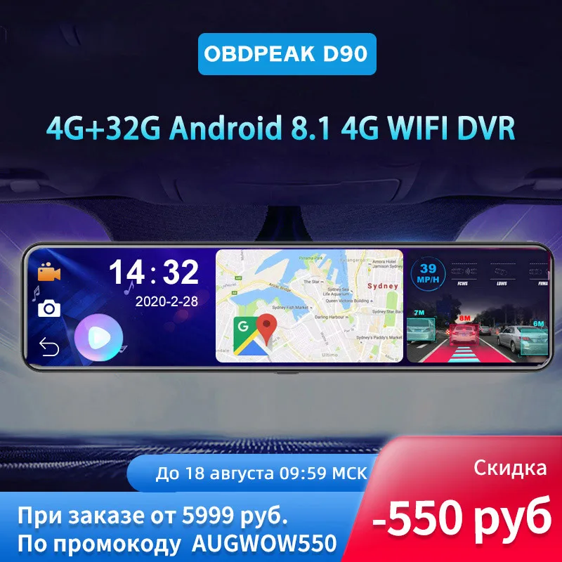 Best OBEPEAK D91 12" Car DVR Rearview Mirror 4G Android 8.1 Dash Cam GPS Navigation ADAS Full HD 1080P Car Video Camera Recorder DVRS and You will save 50% or US $86.93 today